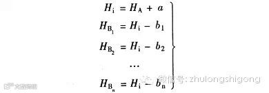 当架设一次水准仪需要测量多个前视点B1,B2,…,Bn的高程时,采用视线高程计算这些点的高程就非常方便。设水准仪对竖立在B1,B2,…,Bn点上的水准尺读数分别为b1,b2,…,bn时,则高程计算公式为:
