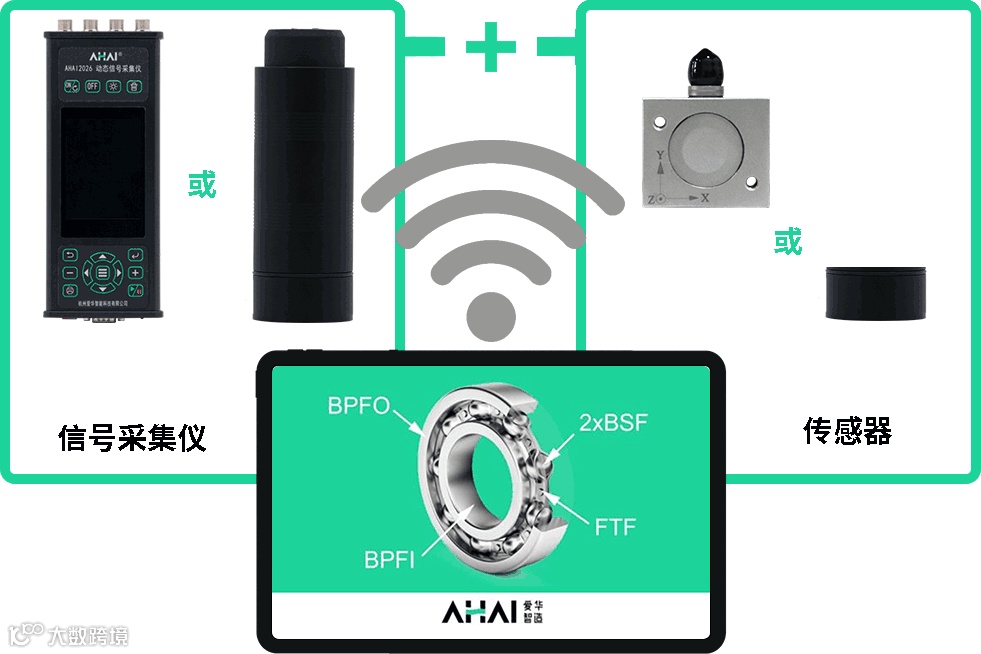 AHAI1044轴承故障诊断仪由动态信号采集仪、三轴向振动传感器、轴承分析仪软件组成。该分析仪基于收集轴承运行时的振动信号来分析轴承的运行状态,从而提取出相应的故障信息判断轴承是否出现故障以及具体的故障类型,对于检测轴承早期故障和预防重大故障具有重要作用。