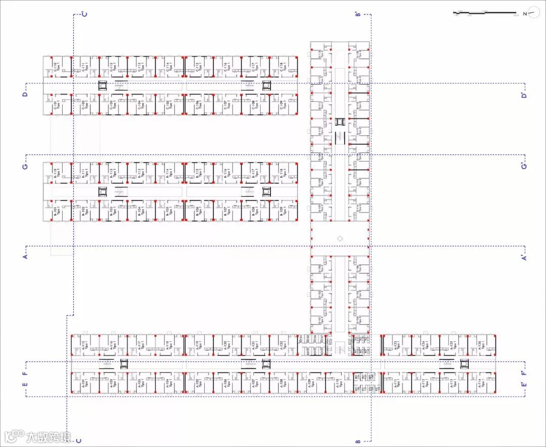 建筑群由531栋房屋组成,被白色建筑区分开来,白色建筑包含60平米的最大公寓和可容纳55平米的陶土体量房屋。它们之间还提供一个大型屋顶花园,看上去像是漂浮在陶土体量上,营造出一种轻盈感。