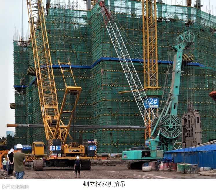 (3)吊装钢柱长约30m,最大钢柱吊装重量约54吨,需采用两台大型履带吊进行双机抬吊,吊装难度高,危险性大。