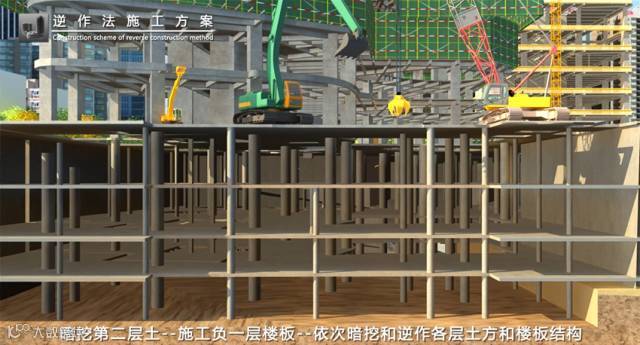 逆作法施工技术是先沿地下室周边施工支护结构,然后施工零米层的梁板楼面结构,作为水平支撑,随后逐层向下开挖土方和浇筑各层地下结构,直至底板封底。从地下结构的形成次序来说,是从上到下逐层建造的,与传统的顺序正好相反,因而称为“逆作法”。