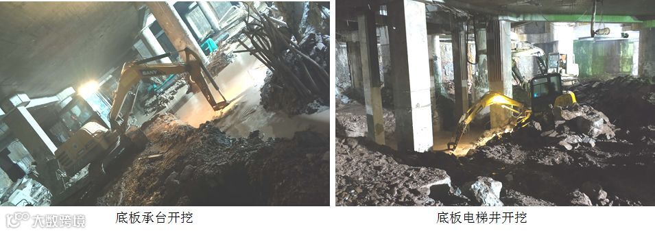 (3)塔楼区钢柱多,跨度间距小,特别是电梯井部位,土方开挖困难,效率极低。