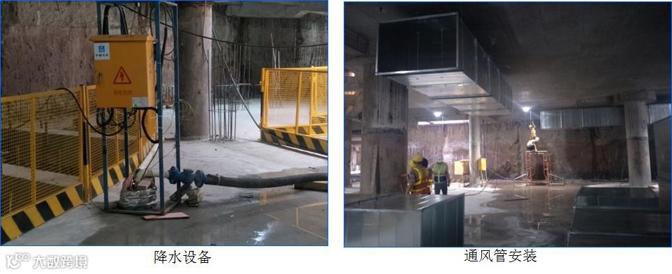 (4)由于逆作法的特殊性,施工中需充分考虑通风、照明、降水排水等措施,方能保证地下室用电安全及施工人员周围环境安全。