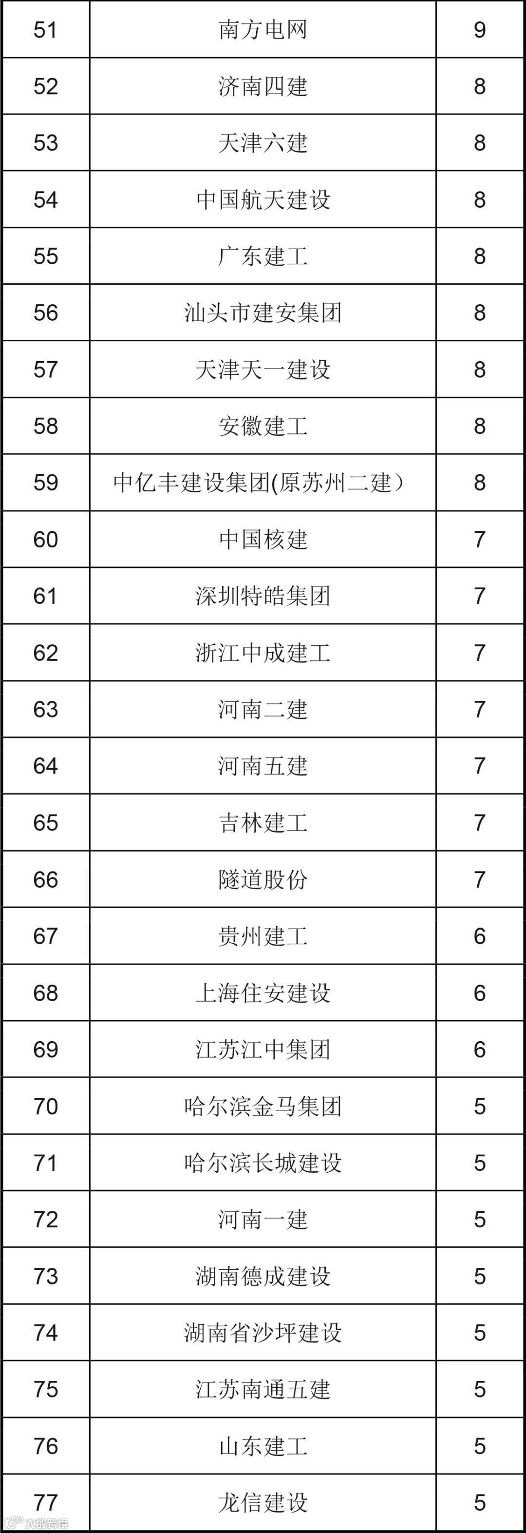 中国建筑集团以345家次的傲人成绩荣登鲁班奖风云榜榜首;