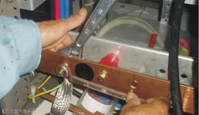 6.5母线连接贯穿螺栓应由下往上穿,从前往后穿,螺母置于维护侧,便于检查,螺栓长度露出螺母2~5扣。