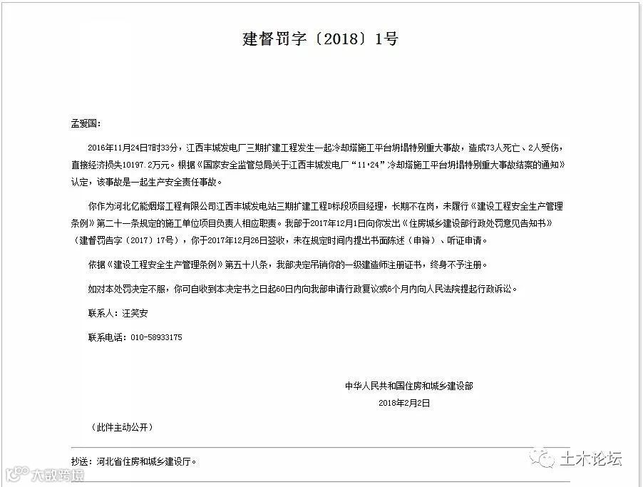 2016年11月24日,江西丰城发电厂三期扩建工程发生冷却塔施工平台坍塌特别重大事故,造成73人死亡、2人受伤,直接经济损失10197.2万元。虽然事故过去几年,但是这几年一直有人被追判,事故影响程度非常大!