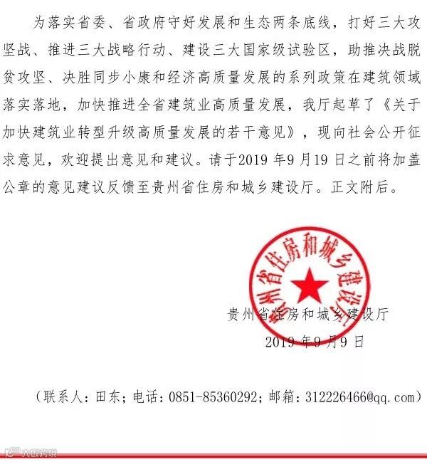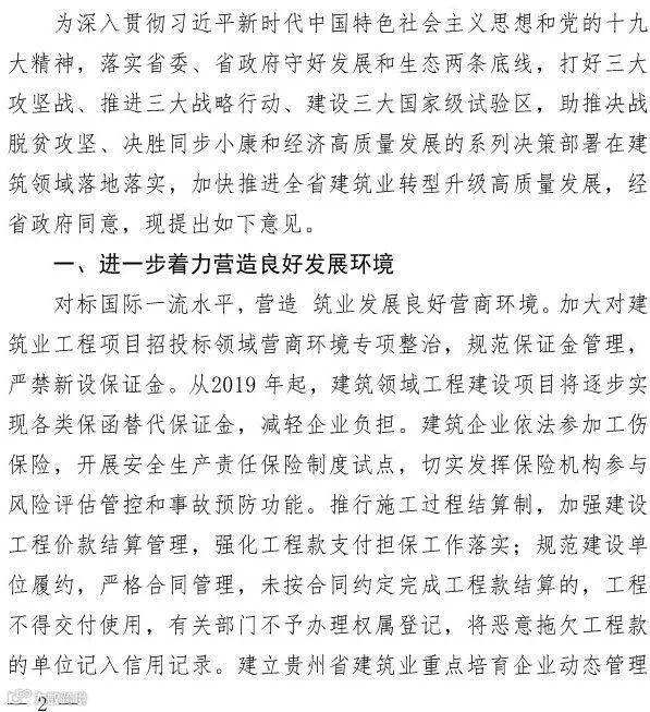 近日,贵州省住建厅就《关于加快建筑业转型升级高质量发展的若干意见》公开征求意见。