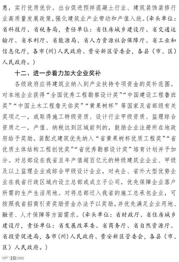 2、加大对本地龙头骨干企业的扶持力度,定期评选建筑业重点培育企业名录,贵州建筑业企业“十大品牌”,建筑施工企业100强,造价咨询、工程质量检测、装饰装修、监理、构件生产、勘察和设计各20强企业,工程总承包30强、建筑信息模型(BIM)技术应用30强、全过程工程咨询30强、建筑装修10强企业。