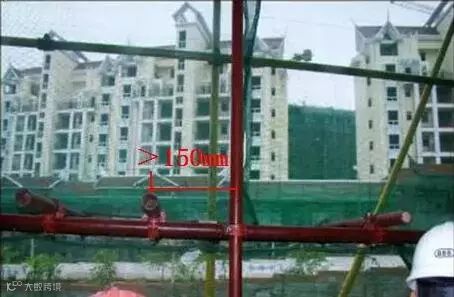 7.3.13脚手板应铺满、铺稳,离墙面的距离不应大于150mm。