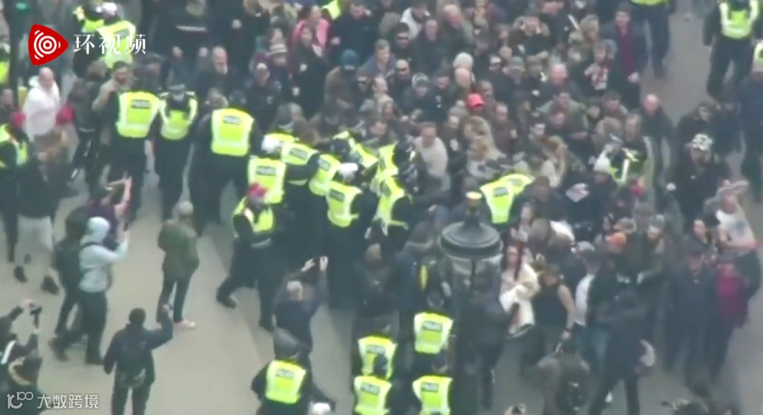 英国伦敦举行反疫情严格管控抗议!示威者与警察爆发冲突