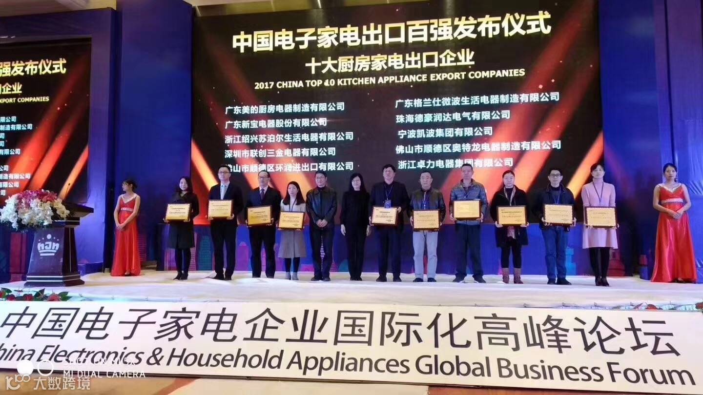 斩获2017年中国十大厨房家电出口企业、2017年中国十大咖啡壶(茶壶)等两项殊荣