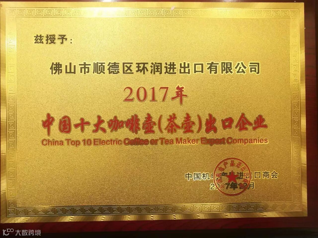 其中,佛山市顺德等8家顺德企业分别获得殊荣。尤其是我司独揽“中国十大厨房家电出口企业”及“中国十大咖啡壶(茶壶)出口企业”两项大奖。