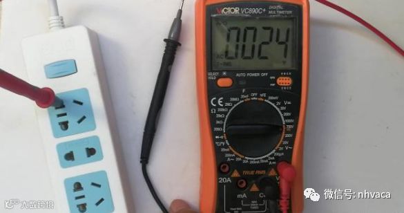 上面工作都准备好就可以去区分零线和地线了(注意这里没有火线),用红表笔去插向待区分的两个插孔或者去接触待区分的两根导线,在测量的过程中同样会观察到这两根线在测量时显示屏上显示的电压值不同,不过这个数值比连在火线上时要小的多,这也是选择小量程的原因。