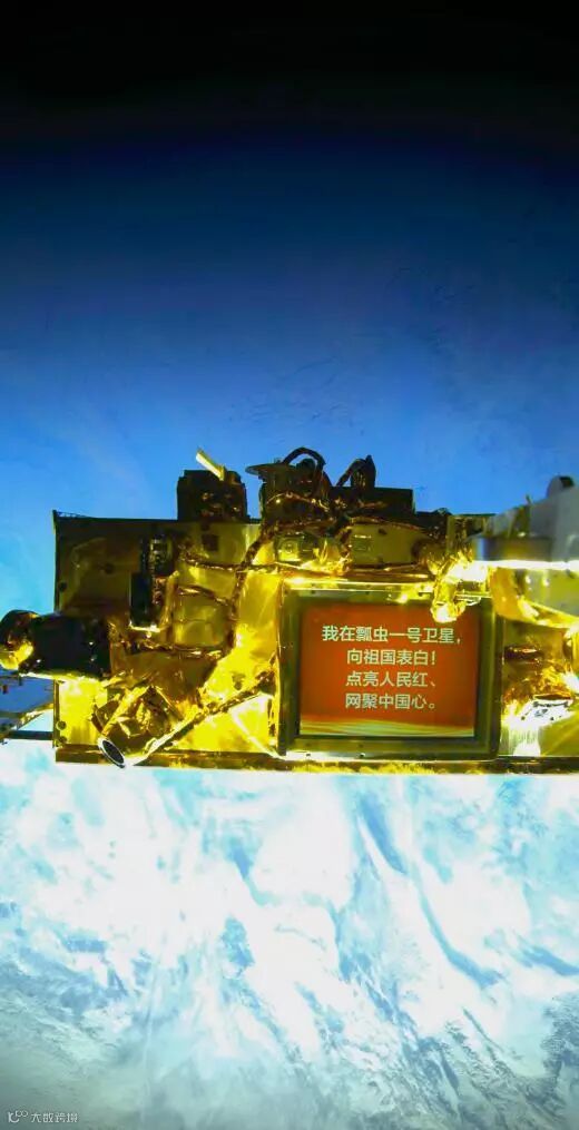 9月20日晚,人民网网友通过瓢虫一号卫星把对祖国的表白传递到太空,在距地球547公里之外的地方,拍下了这张照片。