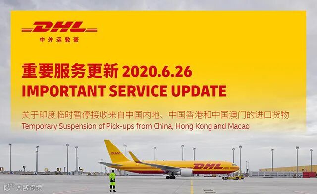 更甚的是6月30日收到紧急通知:DHL和FEDEX暂停接收寄往印度的货物,最新通知暂停所有快件延长到7月13日。