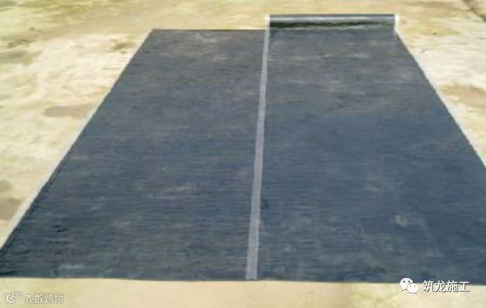 d.为了防止卷材粘脚,可在卷材面上撒水或水泥干粉作隔离措施。