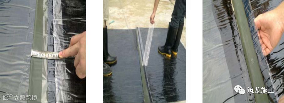 a.卷材(粘结面朝上,即粘结面朝着主体结构)沿着控制线进行试铺。