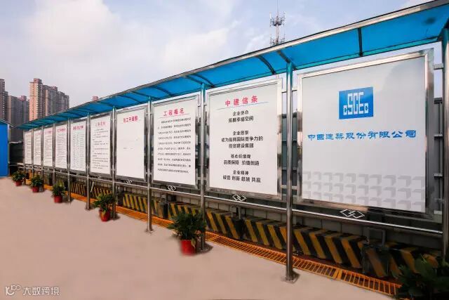 九牌一图,工程概况、安全制度、中建信条、入场须知一应俱全。