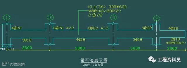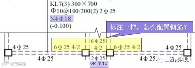 4、当梁的集中标注中已注写了梁上部和下部均为通长筋的纵筋值是,则不需要在梁的下部重复做原位标注。