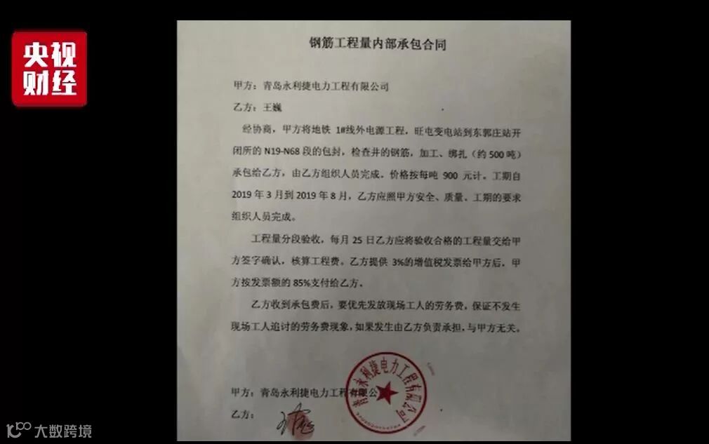 从青岛地铁到爆料人,一个总额1.4亿元的地铁配套项目工程,历经永利捷、顺源达等多家公司分包、以及多位“中间人”转手。其中环节到底有没有涉嫌违法?央视记者走访了青岛地铁集团和葛洲坝电力公司。