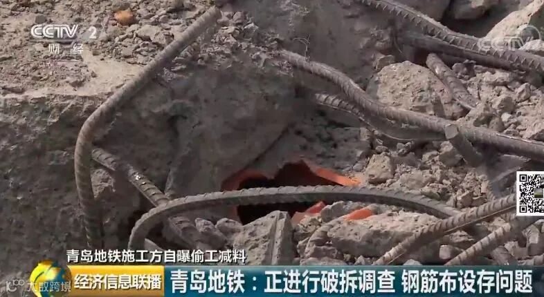 △【视频】青岛地铁:正进行破拆调查 钢筋布设存问题