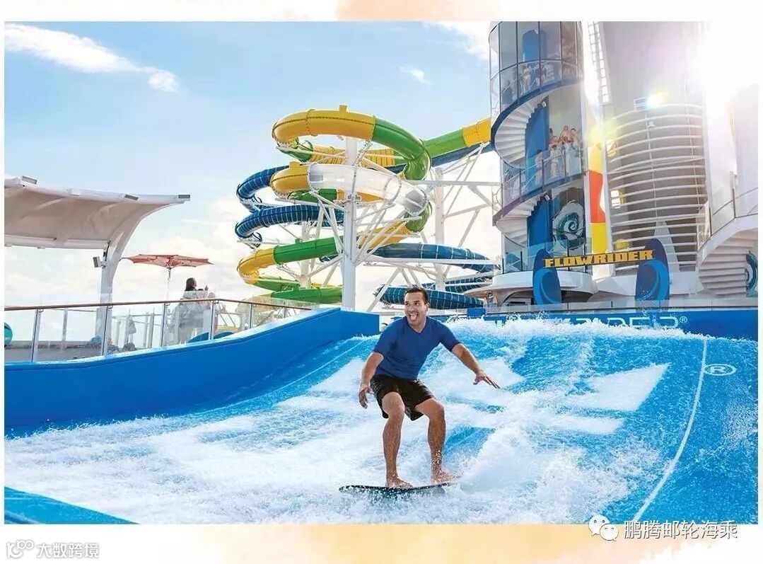 其实并不是每艘皇家邮轮的船尾都有甲板冲浪,现在登上海洋航行者号,你也可以体验冲浪的快乐。