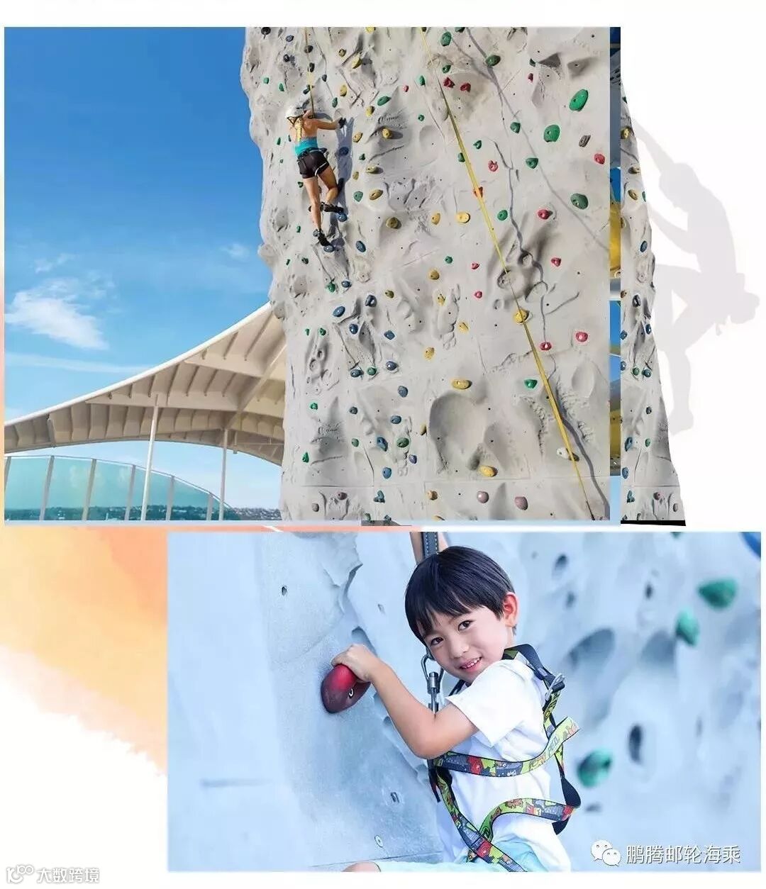 在篮球场的旁边有一面高高的攀岩墙,这是属于勇敢者的游戏。