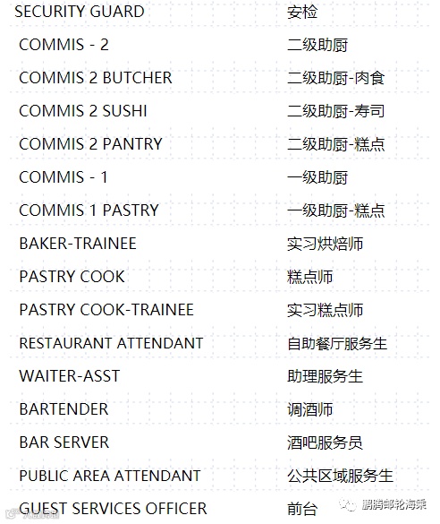 史上最多最全邮轮岗位招聘