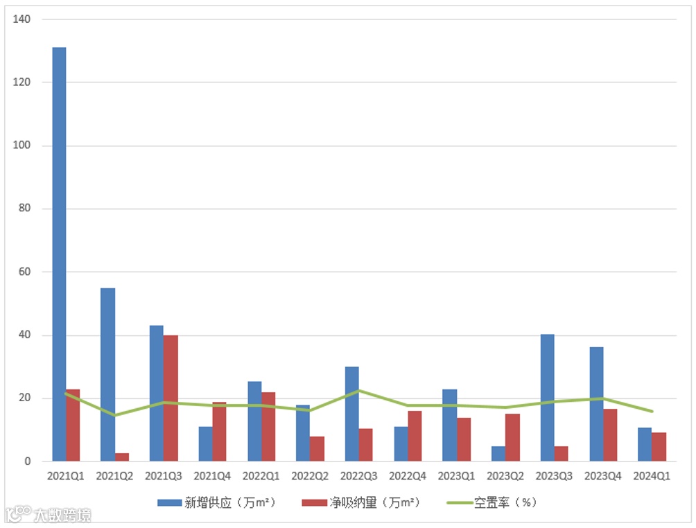 2024年第一季度上海写字楼市场供需情况