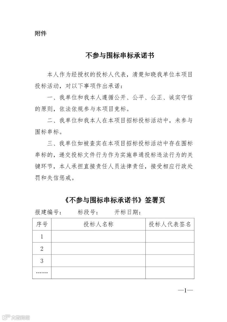 四、投标人如被查实在该项目招标投标活动中存在围标串标的,签署承诺书的投标人代表将作为实施串通投标违法行为的直接责任人员,一并被进行行政处罚和失信惩戒。