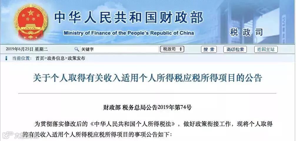 6月25日,财政部、税务总局联合印发《关于个人取得有关收入适用个人所得税应税所得项目的公告》(以下简称“公告”)。