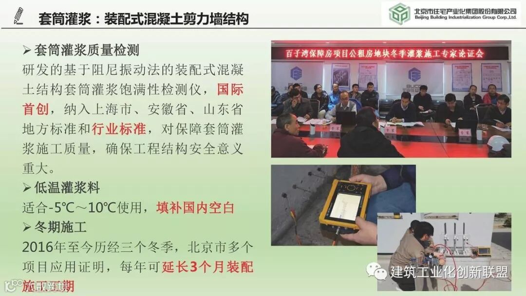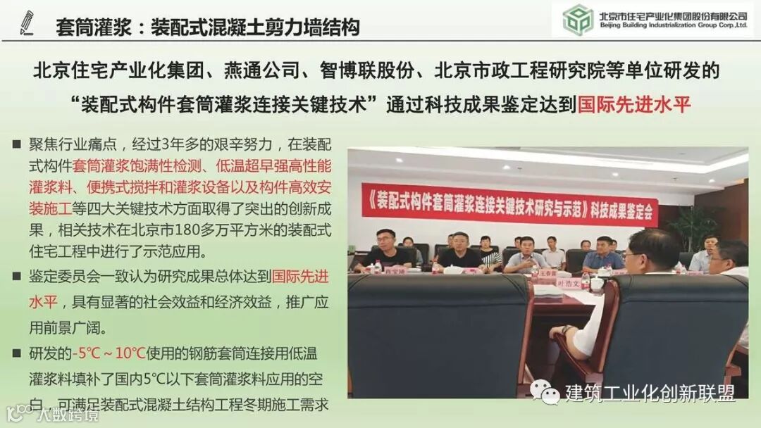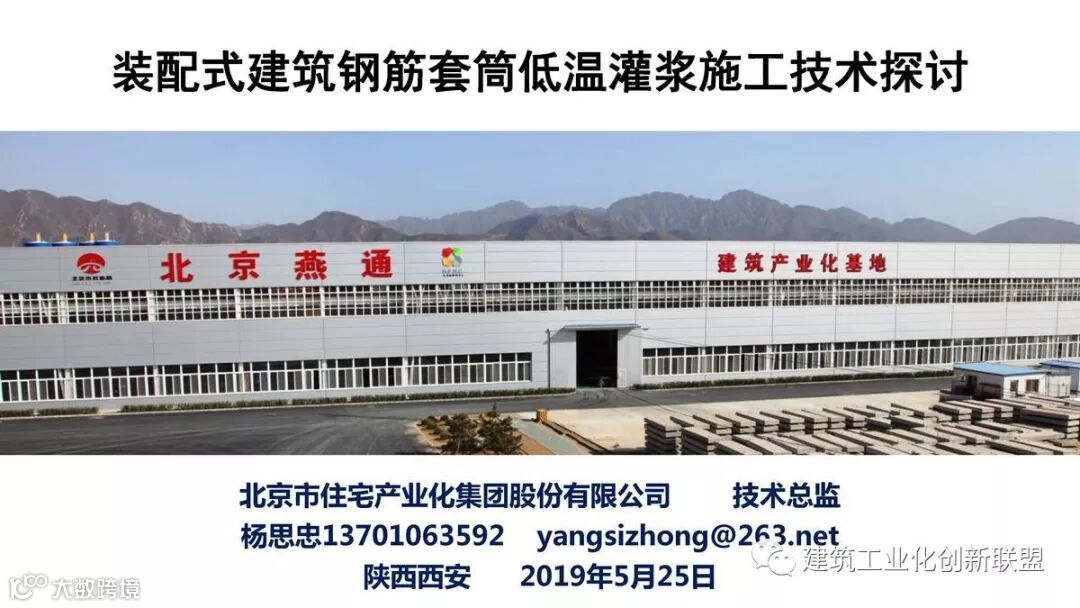 市住宅产业化集团股份有限公司技术总监杨思忠做了《装配式建筑钢筋套筒低温灌浆施工技术探讨》主题