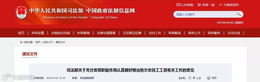 4月3日,司法部发布《关于充分发挥职能作用认真做好根治拖欠农民工工资有关工作的意见》,明确年内将出台行政法规,解决农民工工资拖欠。