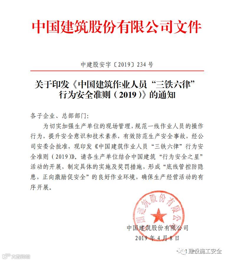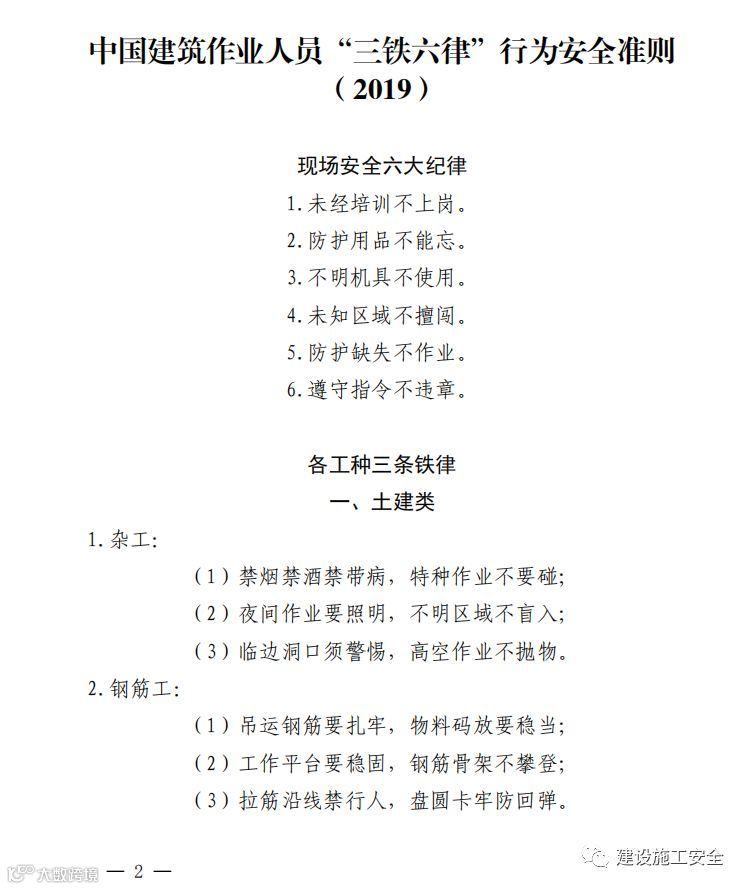 重磅 | 中国建筑作业人员“三铁六律”行为安全准则(2019)
