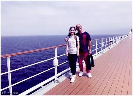 当天下午我们来到邮轮的最高层欣赏美景,我从未如此近距离的接触过大海,使我情不自禁地想起白居易的诗句“海水无风时,波涛安悠悠”,站在甲板上的我就好像拥进了大海的怀抱,它让我感到人是那么的渺小,它无边无际,深不可测。主办方的两位老师除了带队杨老师外,还有一位摄影老师,我们都叫他张大师,我们在船上的一点一滴都被他用相机记录了下来,也给我们录制了宣传片,这都会是我们人生中一笔宝贵的财富。