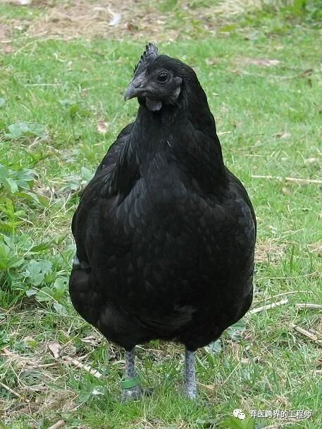 其实,如果讲特征,乌骨鸡最大的特点就是这个丝状羽毛了,所以在西方,乌骨鸡被称为“丝绸鸡”。而黑色,反而不算它独有的特征,实际上黑色的鸡还有好几种,比如瑞典黑鸡和越南黑鸡,它们的羽毛都是黑色的。尤其是这个瑞典黑鸡啊,已经是非常非常黑了,浑身上下,除了头上的肉冠和嘴下的肉垂是红色、眼睛是深褐色的,其他地方都是黑的。