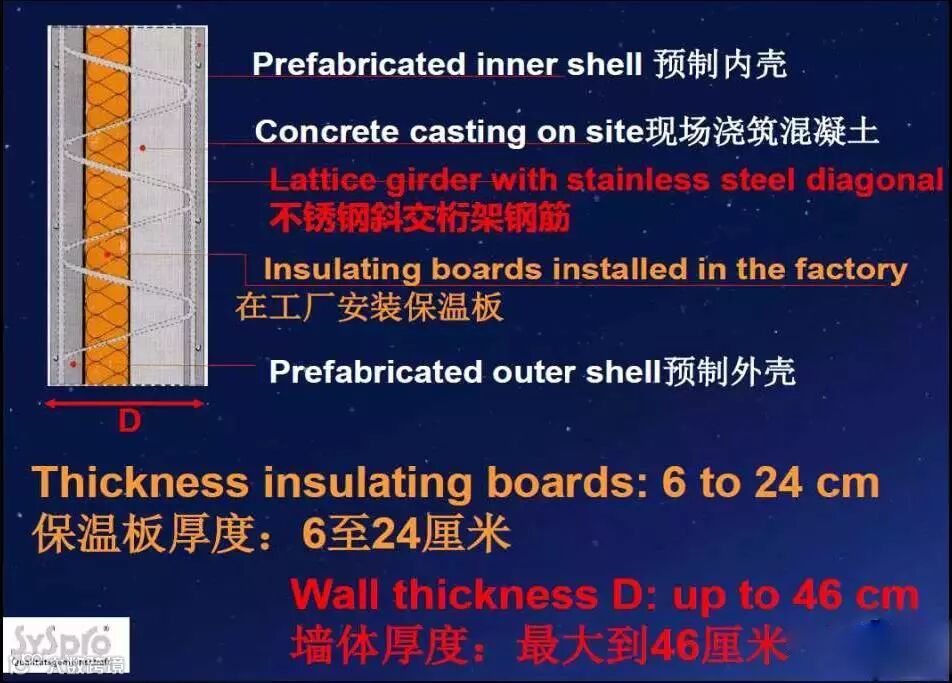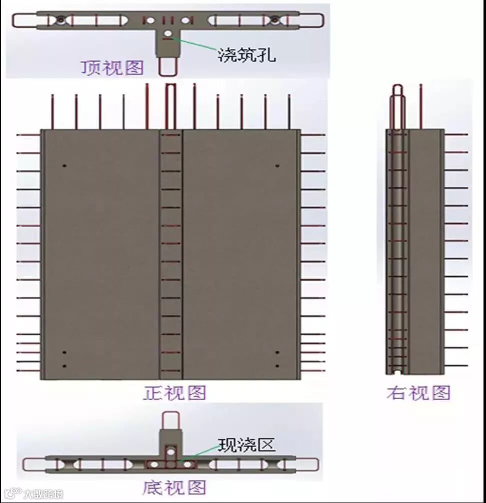 优点:上下层剪力墙现浇连接,内外墙板与内芯整体受力;预制部分代替了部分模板,可全自动化生产。