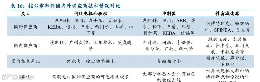 3)核心零部件是决定本体性能和产品标准的重要部分,形成较强进入壁垒;