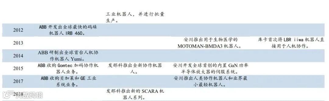 欧美国家已经在过去几十年中建立起完善的工业机器人产业体系,专注于自身拥有规模效应的大型工业,并拥有成熟的供应商体系,形成了工业机器人四大家族:德国库卡、瑞士ABB、日本发那科、日本安川。