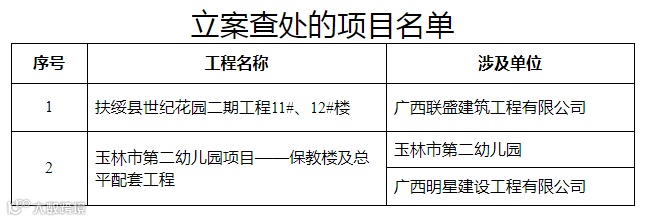 (一)对现场存在较多重大安全隐患的2个项目,请玉林市住房和城乡规划建设委员会、扶绥县住房和城乡建设局对2个项目涉及的3家违法责任单位进行立案查处;
