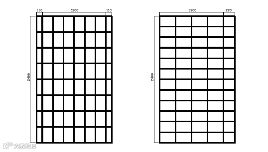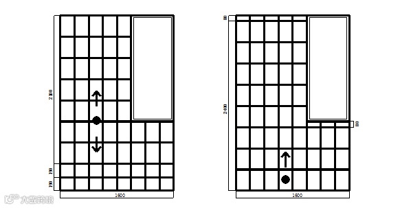 对于墙面,周长是大于墙高的,从理论上考虑,横贴能够使得瓷砖长的一边在周长上充分运用,能节省损耗。下图为3B户型厨房内墙立面。