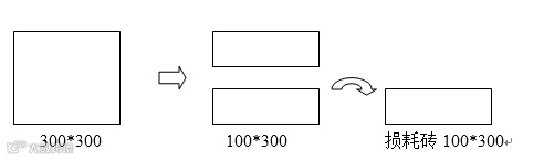 解决方案1:可以选用与300*450规格地砖,可以让使用率明显加大。(注:此解决方案为理论上可行,实际上市场上无300*450规格的地砖。)