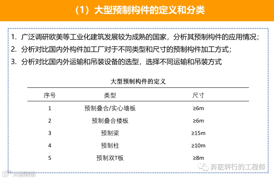 主要是针对大型预制构件市场发展的技术需求,提出大型预制构件无损性库存与运输高效吊装与安装技术的研究方向,子课题基于国内外专用搁置架和运输设备的研究成果,研究大型竖向和水平预制构件专用减震搁置架的钢结构设计方案、结构静荷载和动荷载受力分析,现有运输设备与专用搁置架的关联性研究及安全性评估,通过试制专用减震搁置架和改进专用运输设备并进行减损率和运输效率评价,验证工装设备的合理性和可推广性。
