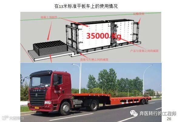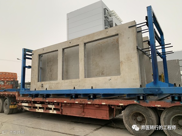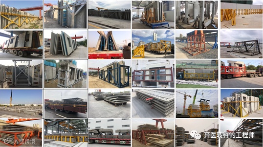 当前大型预制构件用运输设备一般仍采用现有的运输货车,缺乏适用于大型预制构件专用运输车辆。其次,大型预制构件用搁置架缺乏系统研究,在一定程度上增加了预制构件在存储和运输过程中的破损,也大大降低了大型预制构件的运输效率。