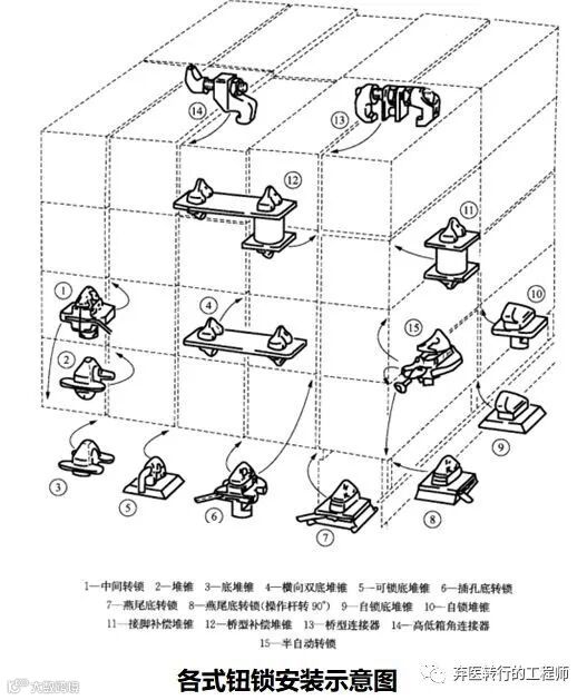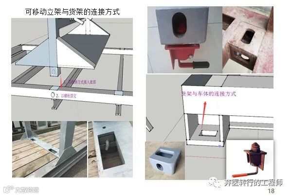 所以在课题研究中先行引进了通过角件与旋锁的整套系统装置,可快速连接固定专用减震搁置架与常规平板货车,在保证了安全的同时又显著提高了装车效率和运输效率。