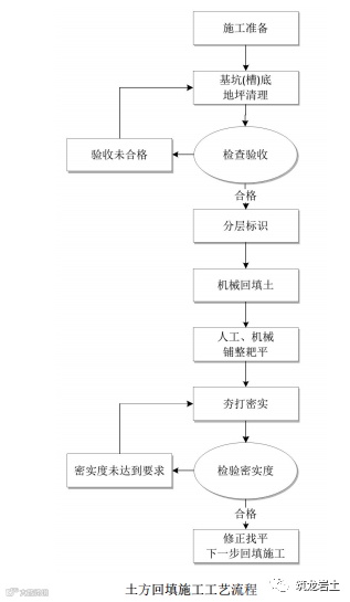 (3)回填土不得含有有机杂质,其粒径不大于 50mm,含水率符合规定。抄测好填土标高线,并且按要求分好各层回填厚度。回填土内不得含有植物、砖块等杂物,为保证回填质量必须清理干净。