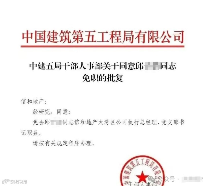 这不,近日中建五局干部人事部的一份免职批复就在网络上“火”了一把,成功吸引了众多网友的眼球。文件里明明白白写着,信和地产大湾区公司那位身兼执行总经理和党支部书记两职的邱总,被“一撸到底”,所有职务都给免掉啦!