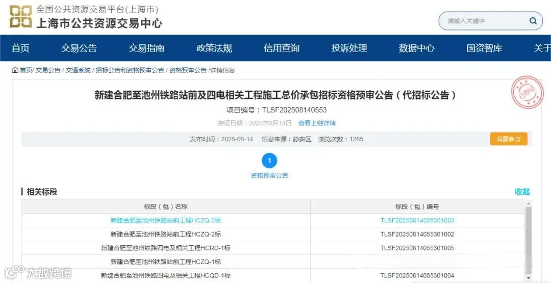 工期已定:计划2025年9月开工,2029年3月建成,总工期42个月。目前招标已启动,分5个标段(3个站前工程、1个四电工程、1个监理标段),进度条拉满!