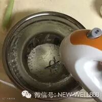 9. 下面是制造蛋白部分:蛋白液中加入柠檬汁,用打蛋器高档快速打成大泡状。