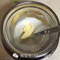 5. 加入黄油,搅拌至无颗粒状,依然是隔水加热法。